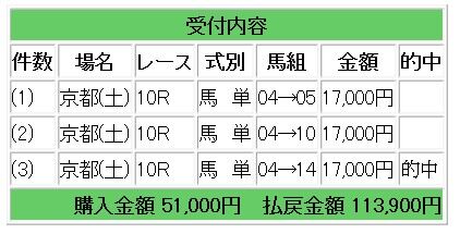 4アスクシュタインからの馬単指示で6.7倍的中となり、11万3900円の払い戻しとなりました。