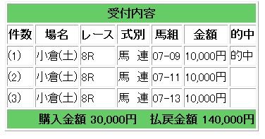 土曜日的中(トリガミ馬券)3万円→1万3700円