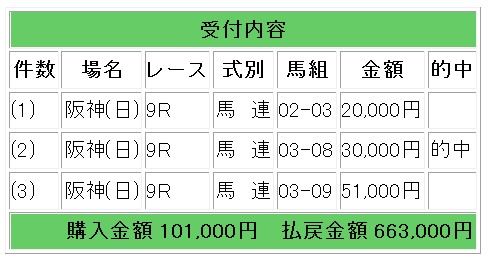 会員様情報では頭固定での馬券指示となり、馬単2点で10.1 倍的中となりました。
