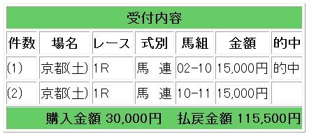 10エフハリストは3着馬を7馬身ちぎる2着となり、7.7倍的中となりました。