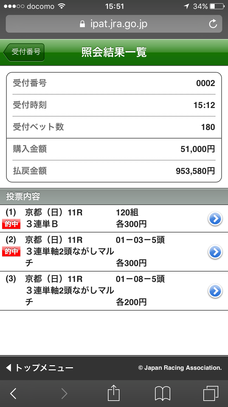 会員様情報での買い目