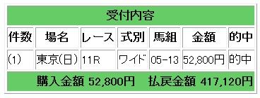 レース当日のオッズはオーサムバローズの単勝 が1.1倍、ワイドは1.4倍となっており、妙味が一番見込めたフォレストタウンの複勝1点での的中となりました。