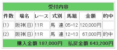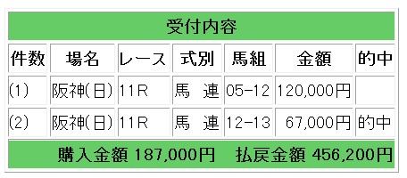 会員様情報で馬連3点指示で18.7倍的中となりました。