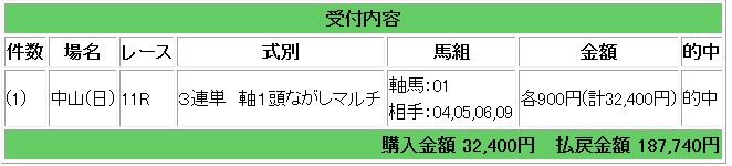 会員様には◎デンコウハピネスからの馬連指示となり、デンコウハピネスが2着で16.9倍的中となりました。