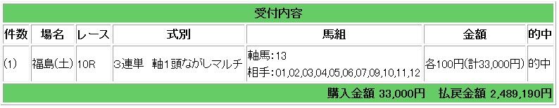 10月1週目83万円獲得(5万円3鞍コロガシ)