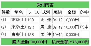 会員様には◎12イッツリットからの馬連3点指示で27.6倍的中となりました。