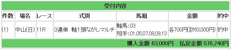 会員様には3ステラヴォローチェ軸の3連単指示で823.2倍的中となり、57万6240円の払い戻しとなりました。