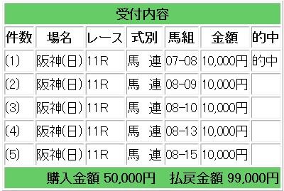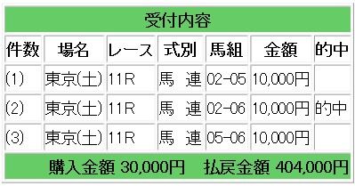 会員様には上記3頭の馬連指示となりましたが、12番人気の穴馬6イズジョーノキセキが1着となり、馬連40.4倍的中で40万4000円獲得となりました。