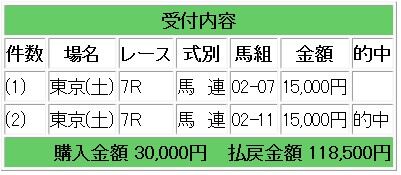 会員様には上記情報馬の馬連ボックス指示となりましたが、ハピネスアゲンが1着、7番人気の穴馬マメコが2着となり、馬連47.2倍的中で47万2000円の払い戻しとなりました。