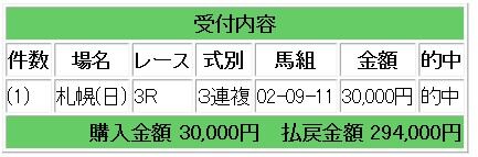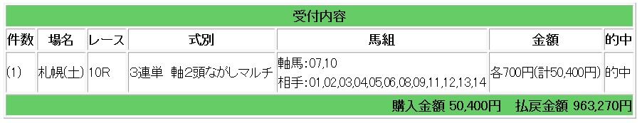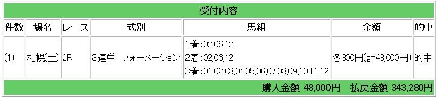 上記3頭のワンツースリー決着となり、3連複9.8倍的中となりました。