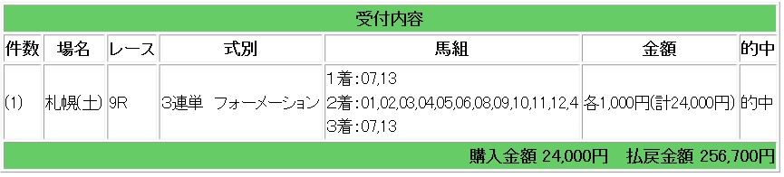 2024年のG1レースは宝塚念的中で12戦8勝(440万円獲得)