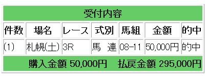 上記情報馬のワンツー決着となり、馬連5.9倍的中で29万5000円の払い戻しとなりました。