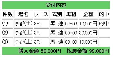 会員様には馬連3点で勝負していただき、9.9倍的中となりました。