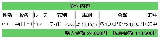 会員様情報でワイド13-15の28.4倍的中となりました。