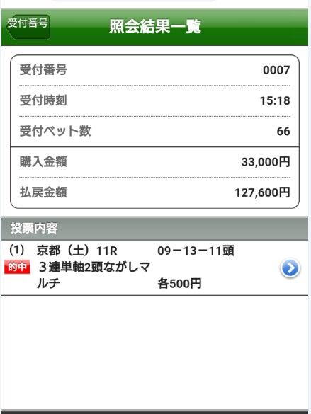 結果は上記2頭の情報馬が2,3着となり3連単255.2倍的中で12万7600円の払い戻しとなりました。