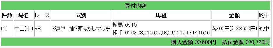 会員様には上記情報馬からの3連単指示となり、情報通りに10番人気の穴馬5ヴァガボンドが逃げ切る形となり、1番人気の10ジゲンも情報通りに3着に取りこぼして926.8倍的中で37万720円の払い戻しとなりました。