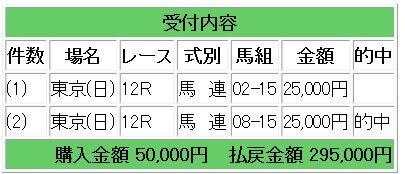 15マスカレードボールからの馬連指示で11.8倍的中となり、29万5000円の払い戻しとなりました。