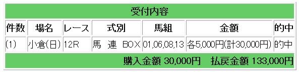 1番人気の2ヴァージルを切り捨てた馬連指示で26.6倍的中となり、13万3000円の払い戻しとなりました。