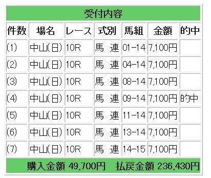 上記2頭の馬連1点指示で7.9倍的中となり、39万5000円の払い戻しとなりました。